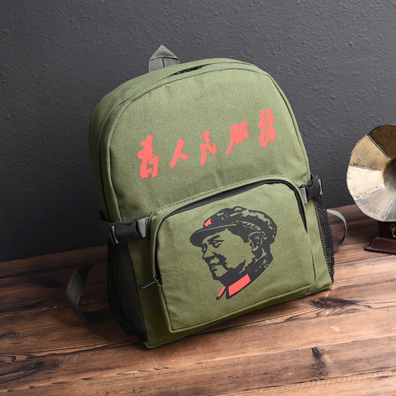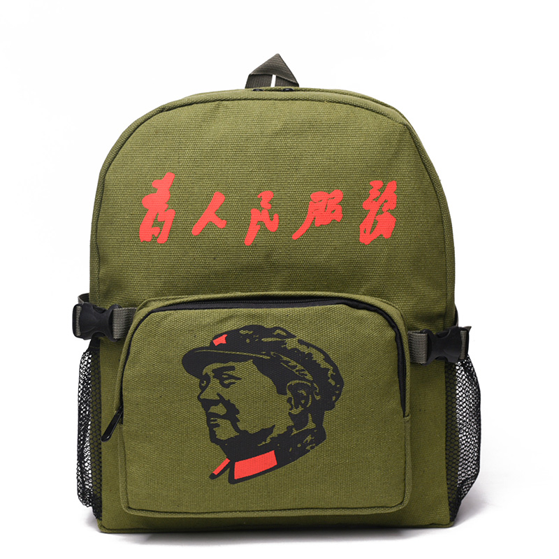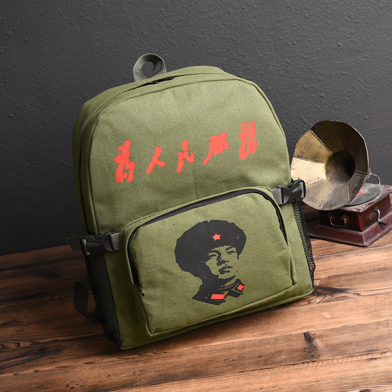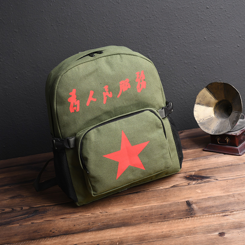 Autumn new style serving the people backpack casual retro canvas nostalgic Lei Feng bag Chairman Mao five-pointed star