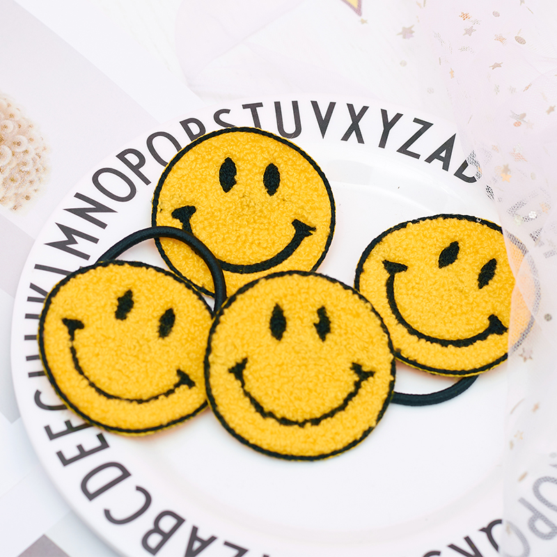 Cute yellow smiley face leather gluten Korean cartoon embroidery hair ring Japanese original wind hair ring yellow smiley face pin
