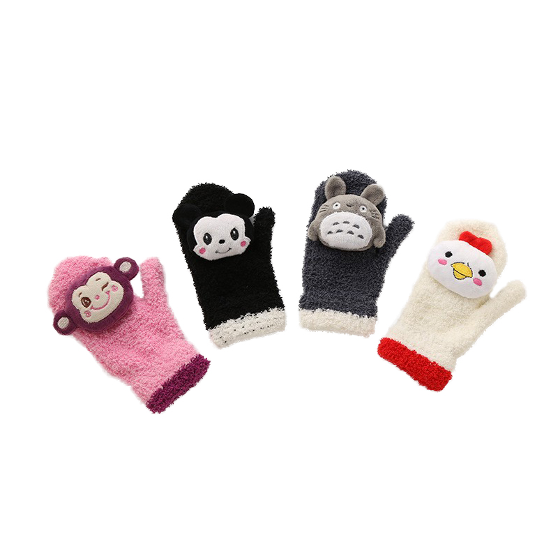 Gloves men and women cute warm knitted wool five-finger parent-child thickened gloves Boy girl toddler plush gloves