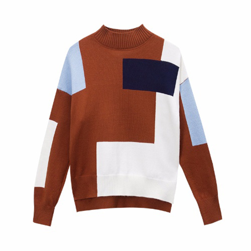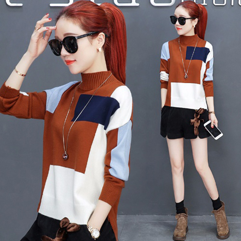 Knitwear women's sleeve head short Han version loose lady hit bottom 2022 autumn and winter new collage half-high-neck sweater