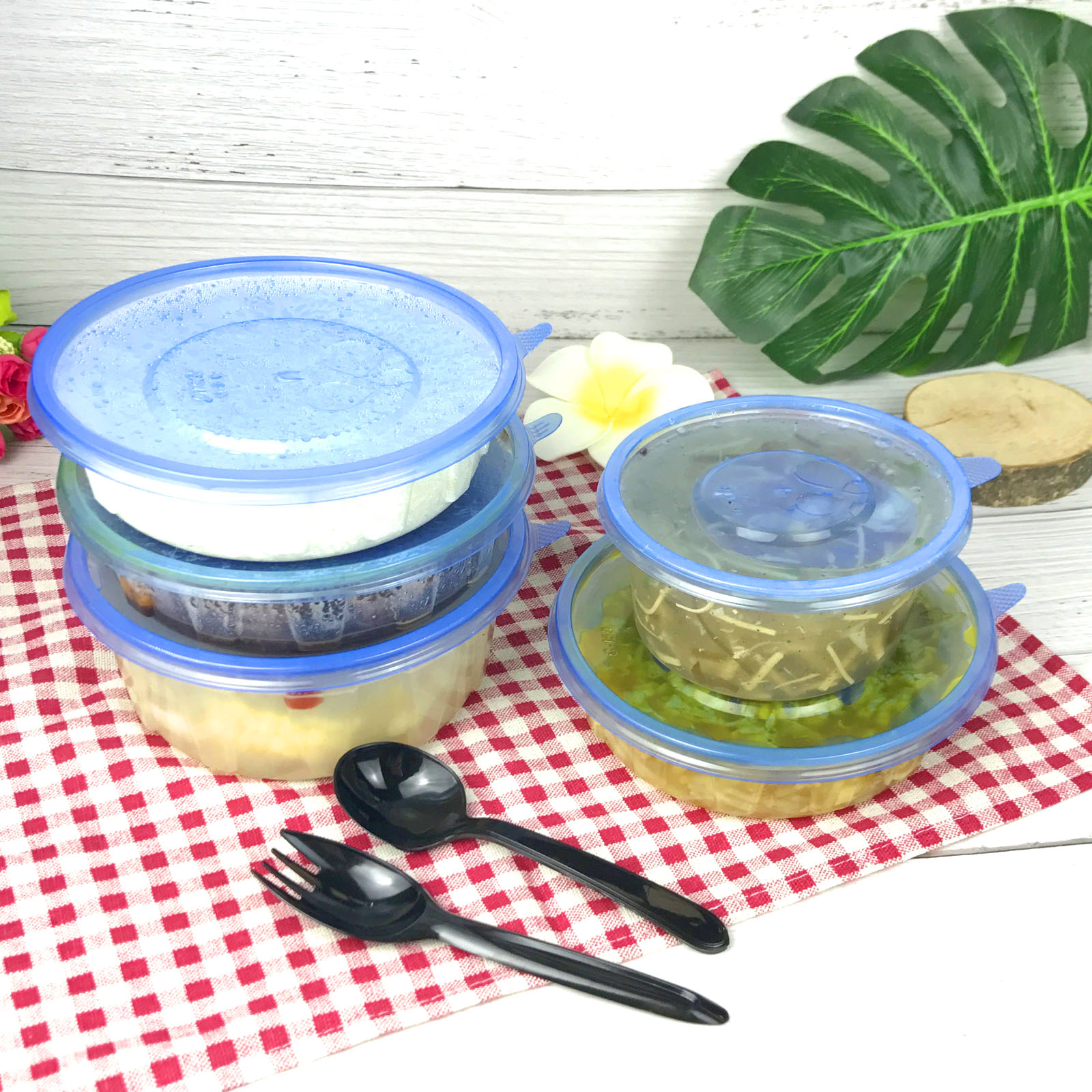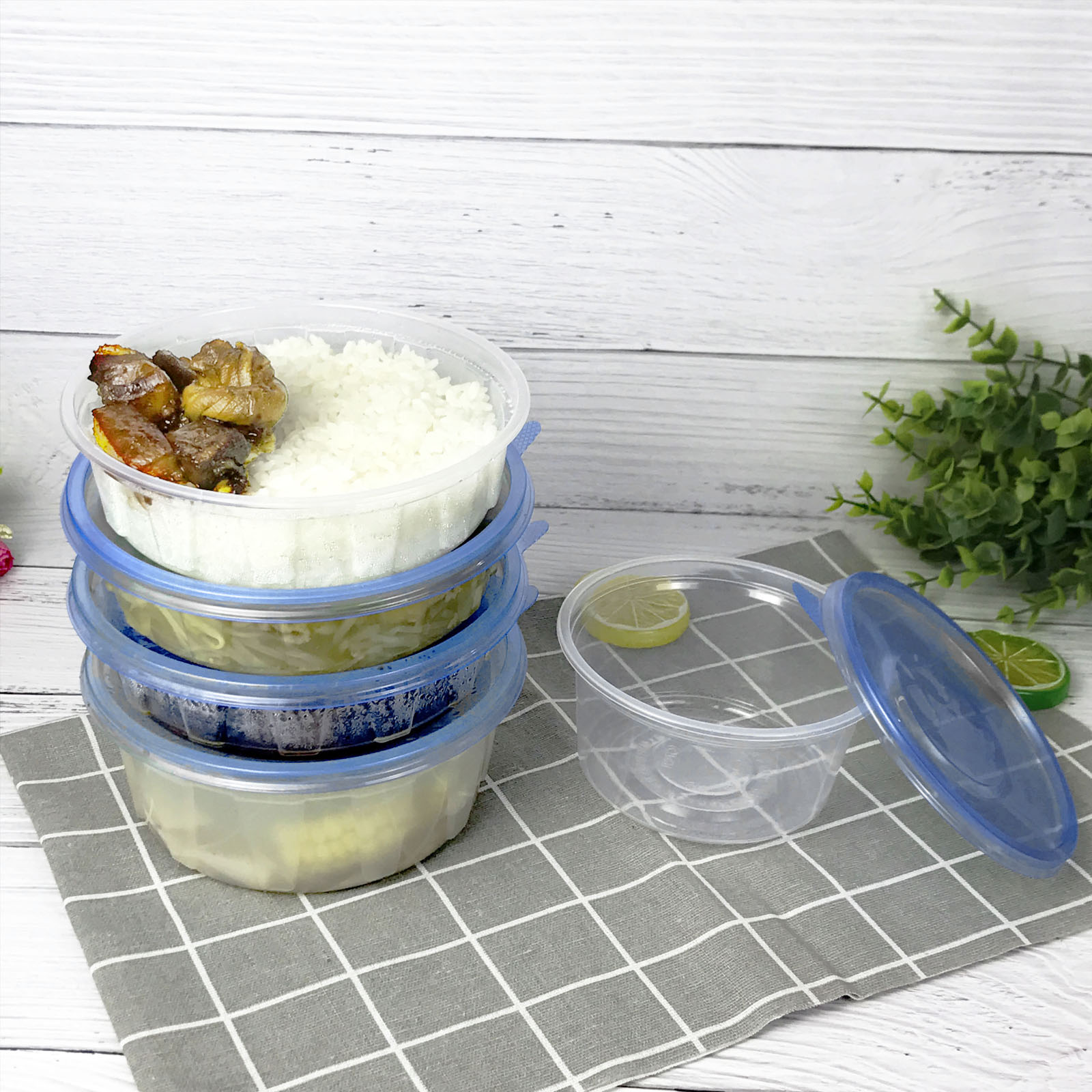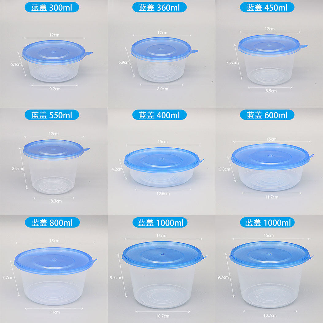 Disposable lunch box Lunch box Soup bowl round delivery packaged fast food box Blue cover bowl fruit melaleuca box 50 sets
