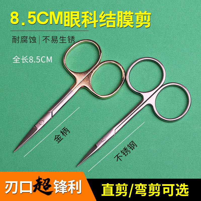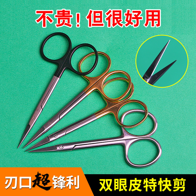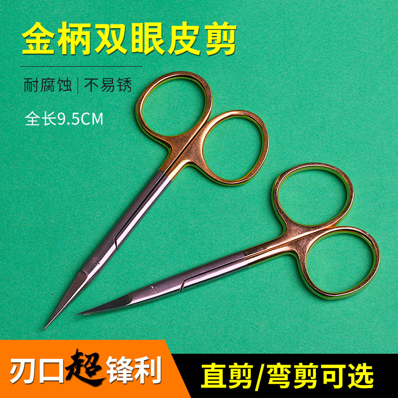 Medical Scissors Double Eyeball Leather Line Open Eye Corner Ophthalmology Surgery Tool Straight Bend Pointed Fine Express Line Engraving Cut