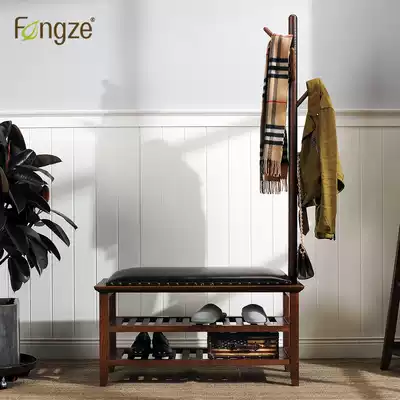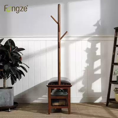 Fengze American solid wood multifunctional shoe stool hanger integrated floor-to-ceiling foyer creative shoe stool AS819