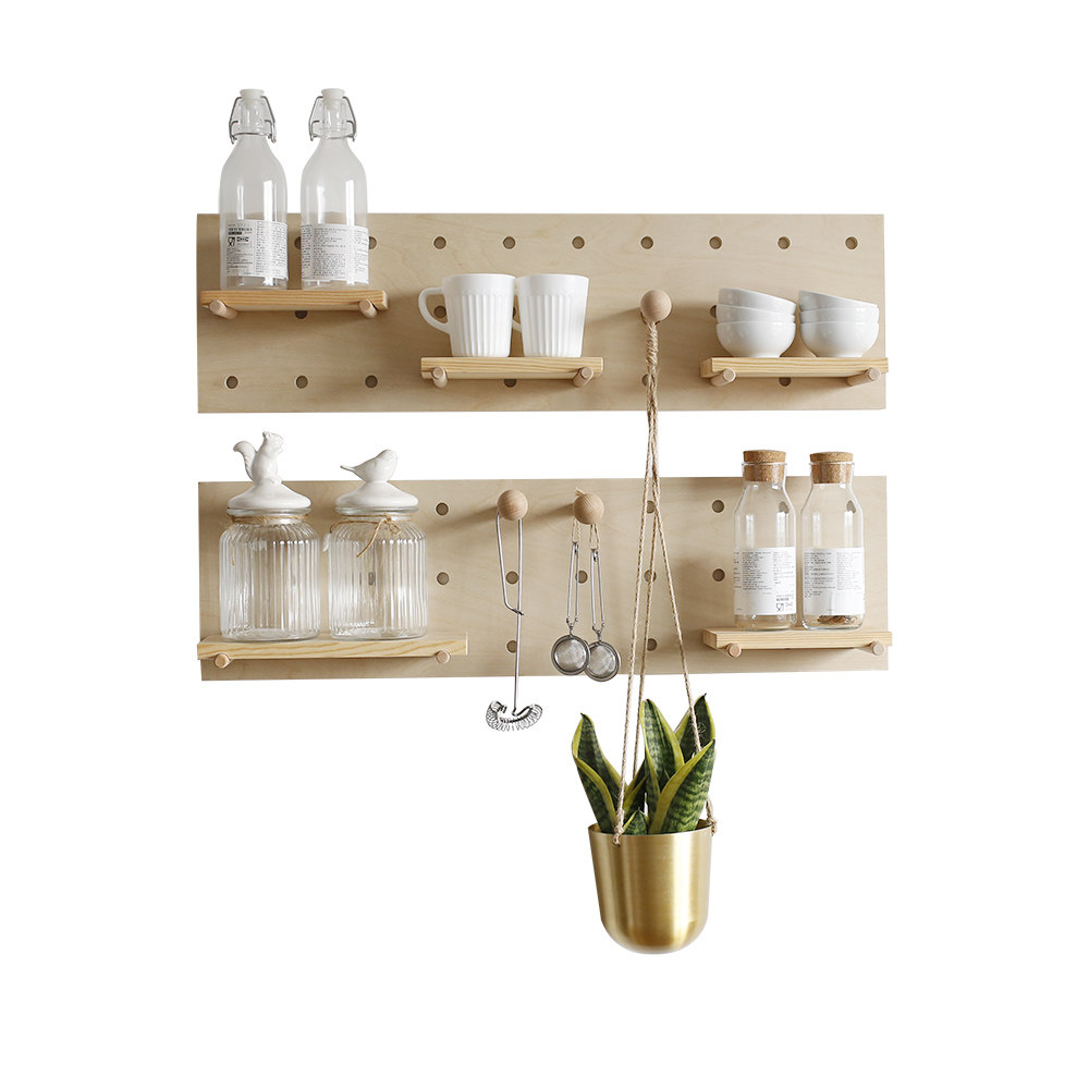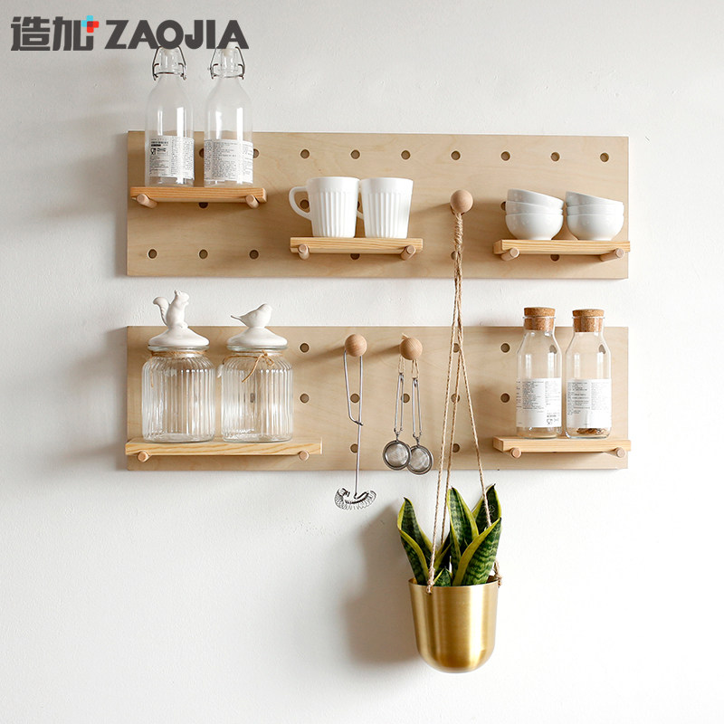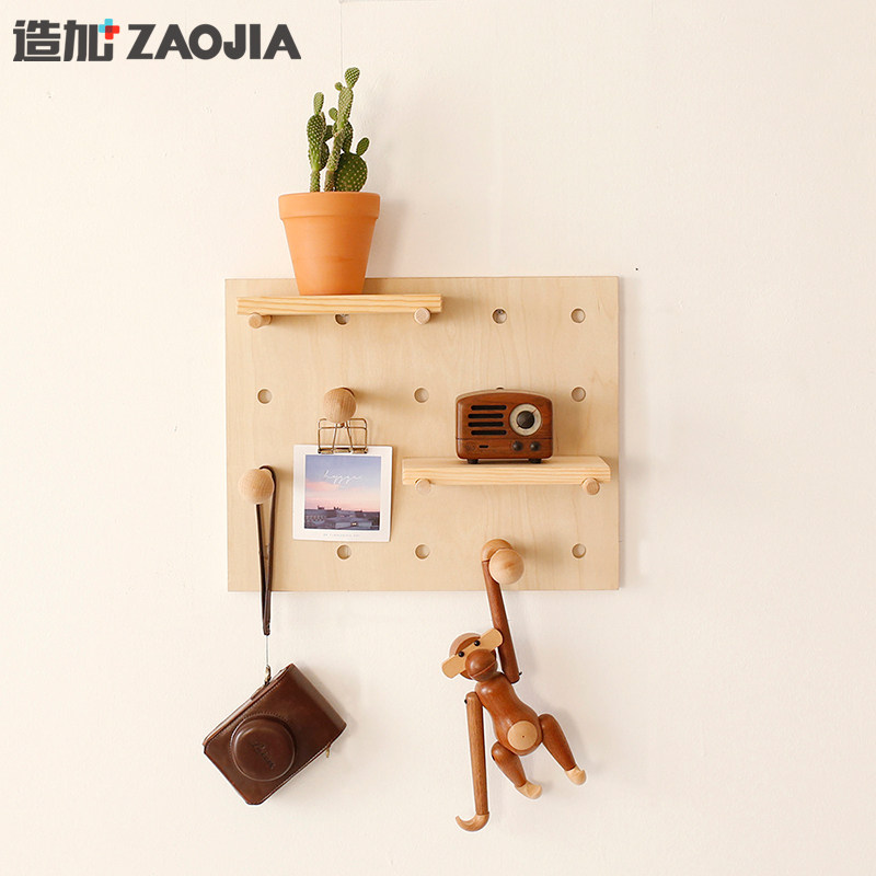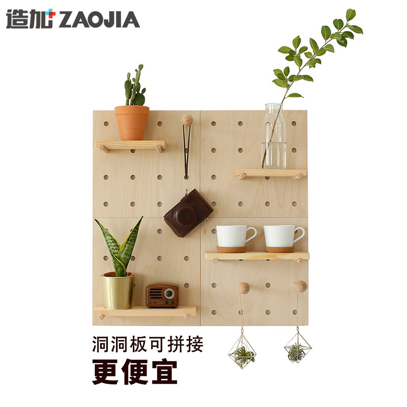 Solid wood hole board home living room TV background wall decoration creative lattice wall-mounted wall shelf