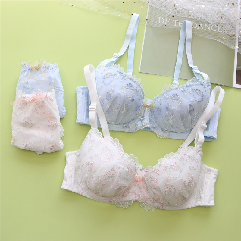 New Cute Sexy Sweet Teenage Girl Hearts Thin Underwear Suit Slightly Gathered Lace Day Ensemble Girls Bra Spring