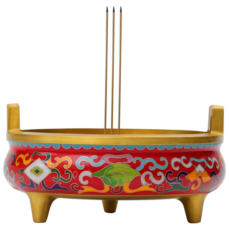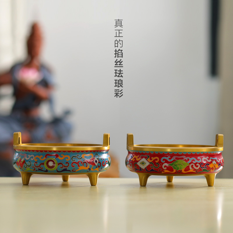 Cloisonne pure copper ring incense burner Enamel color Household indoor line incense Bamboo stick Incense incense incense burner for Buddha incense burner