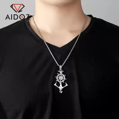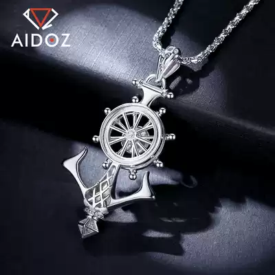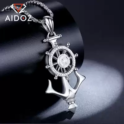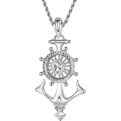 Platinum PT950 pendant White gold men's anchor pendant Fashion rudder men's necklace personality white gold pendant