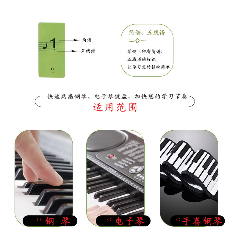 Piano Key Sticker Key Sticker 8861 Electronic Organ Keyboard Stickup Hand Roll Five Line Spectrum Profile Key Phonetic Note Key Position