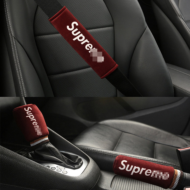 Seat belt shoulder cover a pair of car safety rope manual gear shift lever hand brake cover interior velvet suit