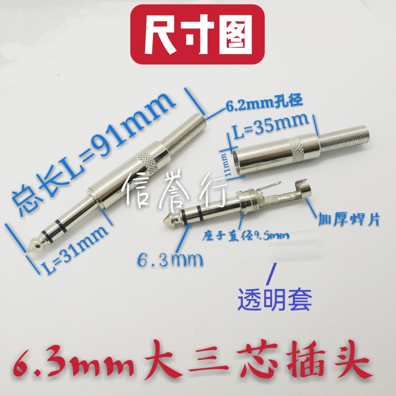 6 5 6 6 35 6 3mm large three-core dual track microphone connector TRS audio socket microphone plug