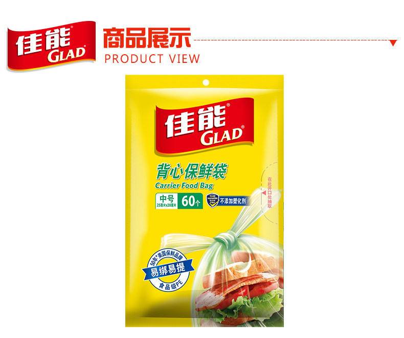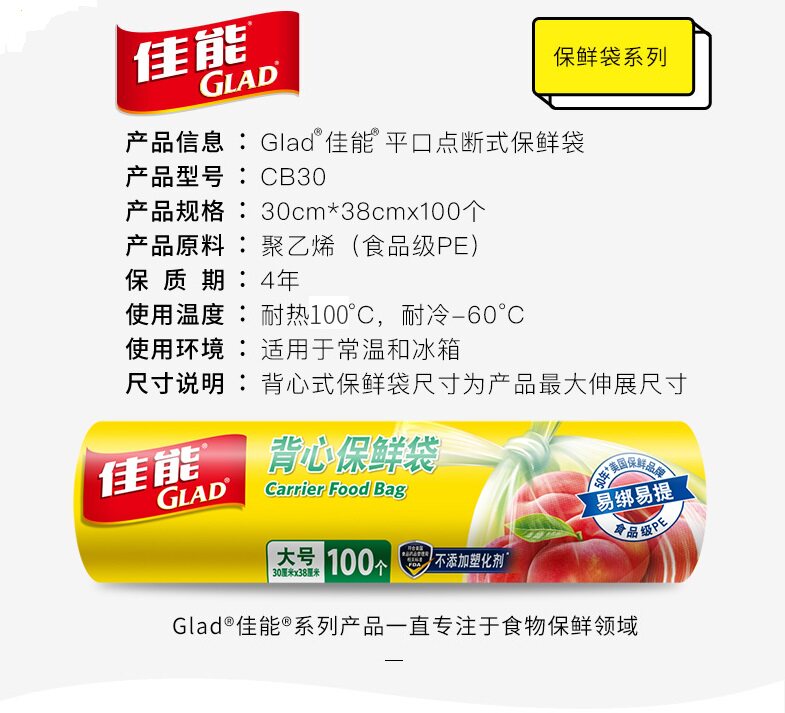 GLAD Canon fresh-keeping bag food household large, medium and small sealed bag extraction vest-type thickened hand-tear bag