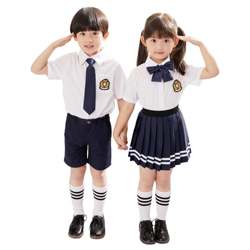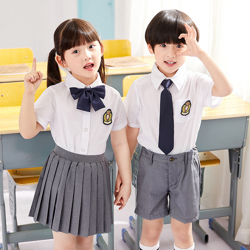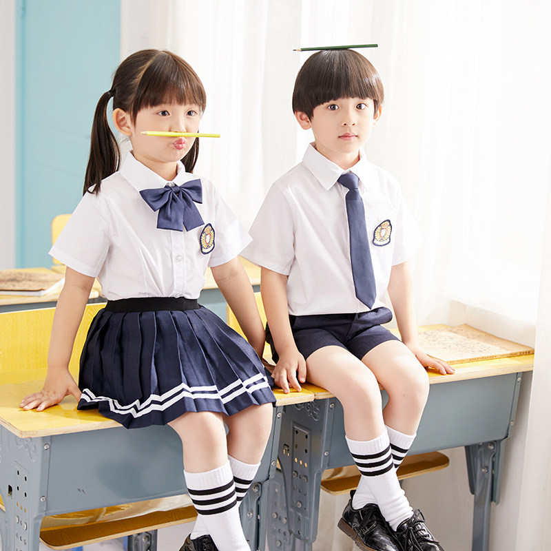 Boys and girls school uniform summer short-sleeved suit primary school students kindergarten uniform college style British two-piece performance clothing