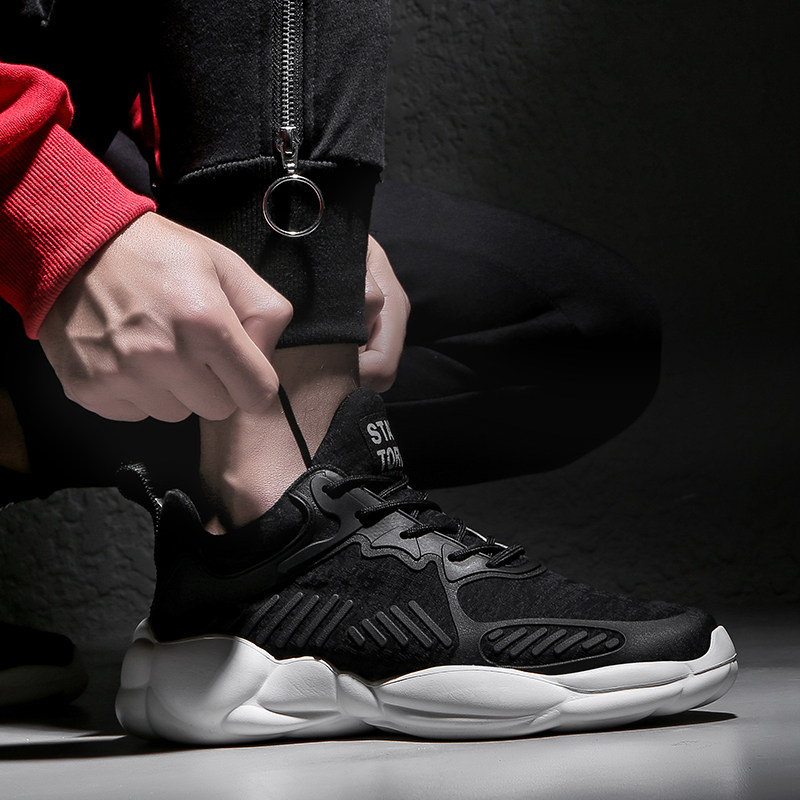 Men's shoes spring and autumn shoes trend men's sneakers mesh thick bottom black Joker thick bottom running shoes casual shoes