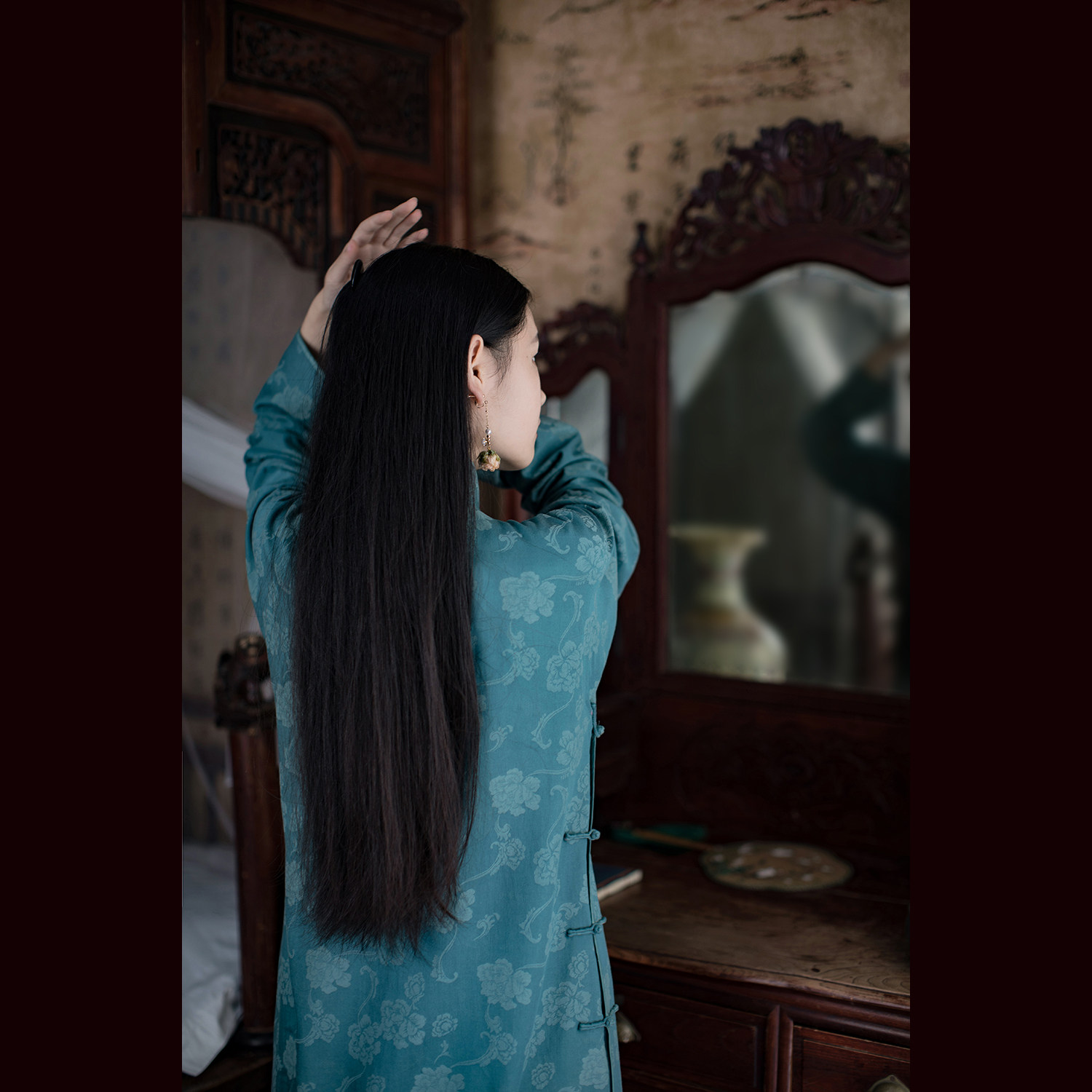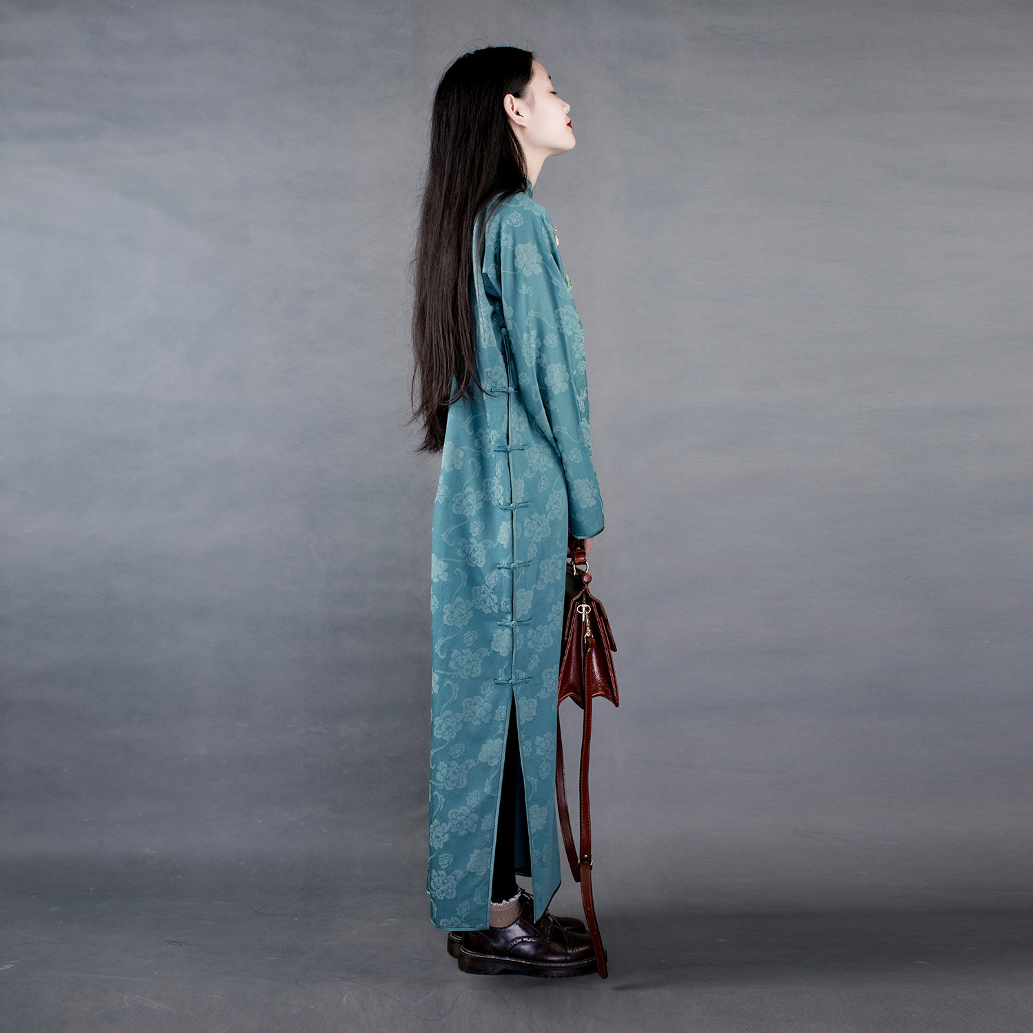 Silk Flowers -- Spring and Autumn Chinese style retro Republic of China Hand-lined Disc Buckle Long Sleeve Traditional Ancient Fajacquard Qipao