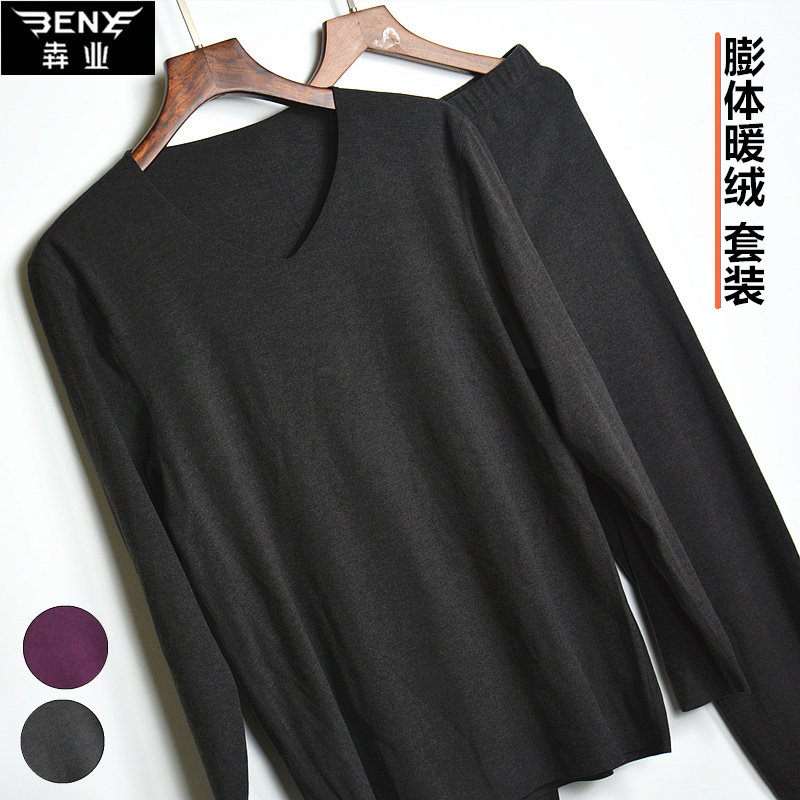 Running unscarred warm clothes suit Men's V collar Monolayer Puffed warm suede Double-sided Grinding of the bottom heating coat E132
