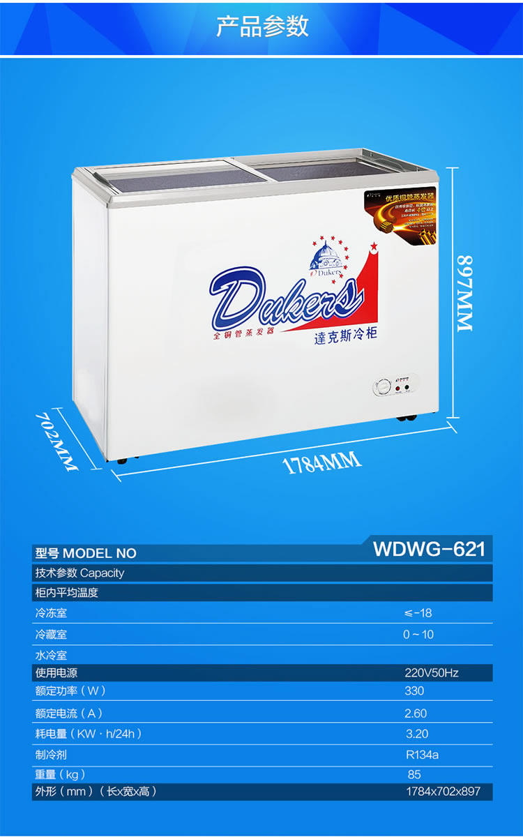 Dax WD WG-621 freezer large-capacity commercial single-temperature refrigerated frozen frozen horizontal refrigerator 621 liters L
