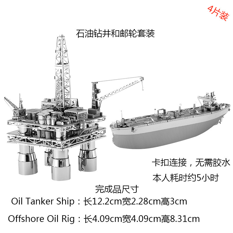 Aipin all-metal stainless steel DIY assembly model 3D mini three-dimensional puzzle oil drilling and cruise set