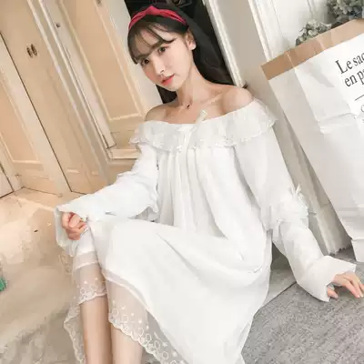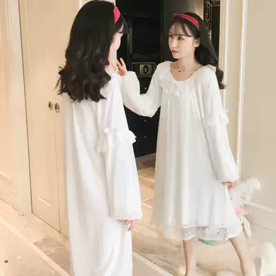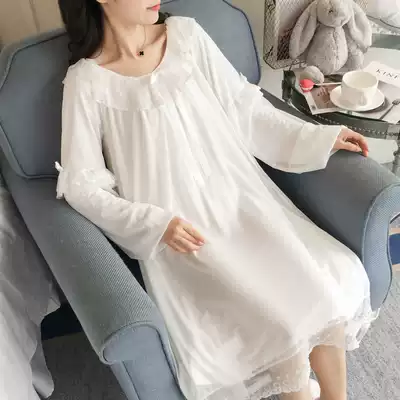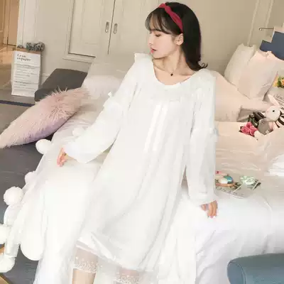Night dress women's autumn long-sleeved cotton court lace pajamas Women's spring and Autumn home clothes Princess style loose can be worn outside