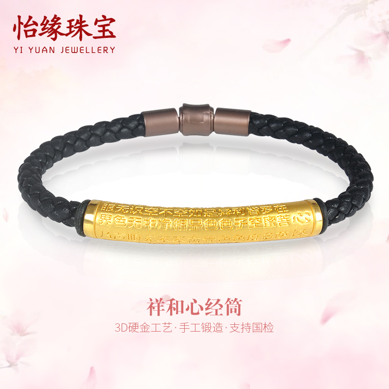 Gold Handmade Men's New Foot Gold 999 Hearts Warp Transfer Pearl Bracelet Woman 3D Hard Gold Pure Gold Leather Rope Pendant Male