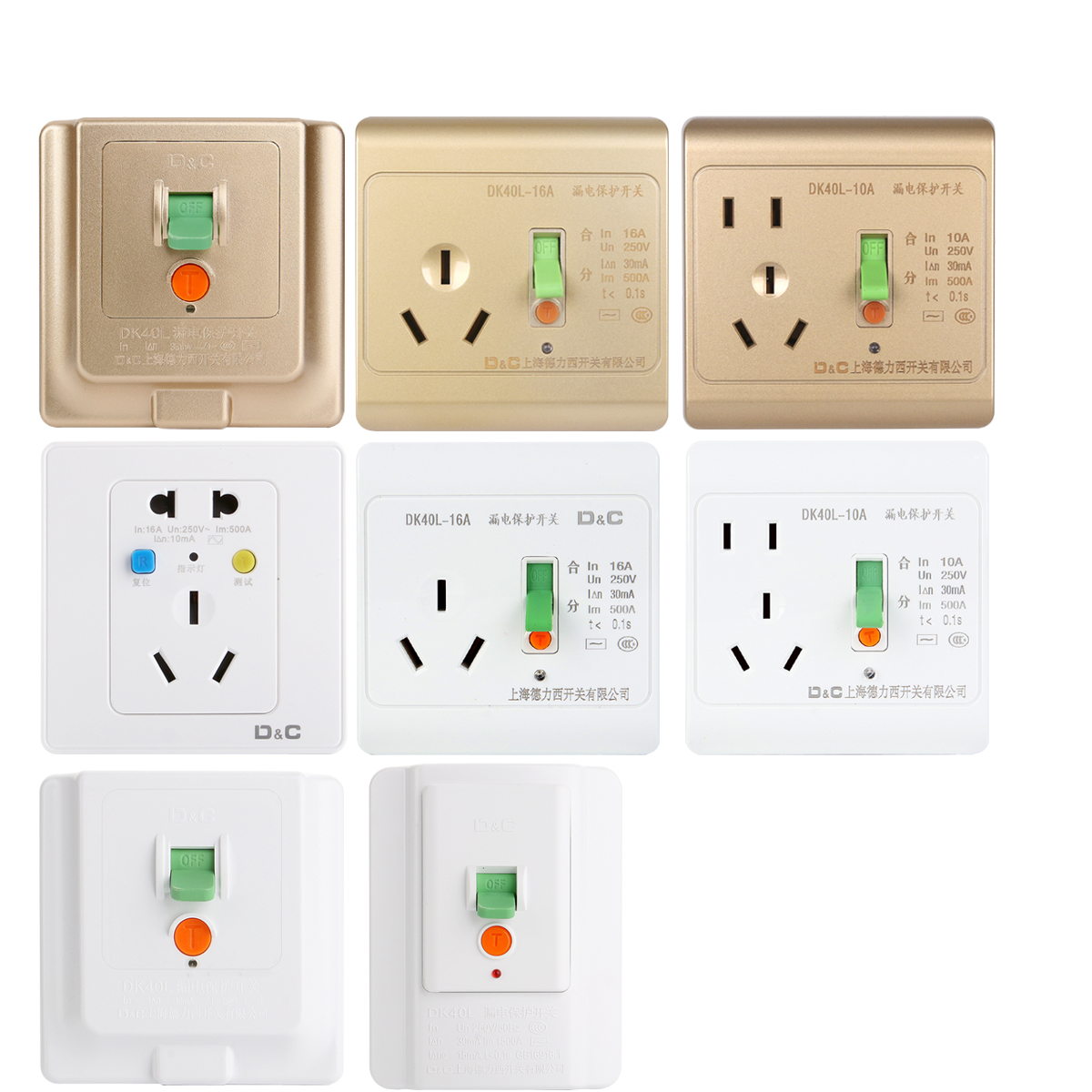 (White) 10a five-hole with switch leakage protection socket (gold) 10a five-hole with switch leakage protection socket (white) 16a three-hole with switch leakage protection socket (gold) 16a three-hole with switch leakage protection socket
