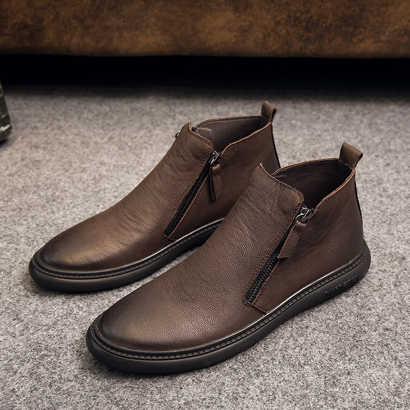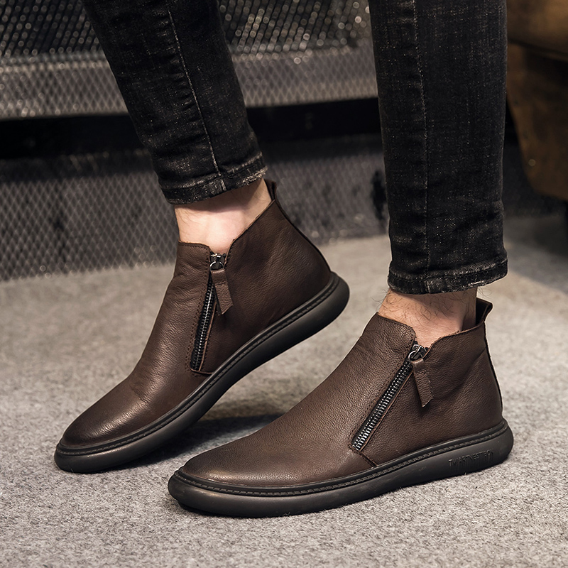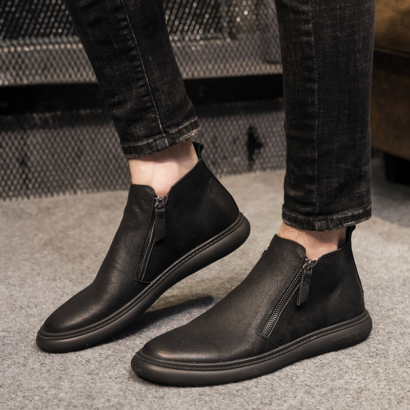 Autumn Winter Inron genuine leather male boots Martin boots Men's short boots Tide Bull Leather High Cylinder Shoes Men's Sleeves Chelsea Boots Man