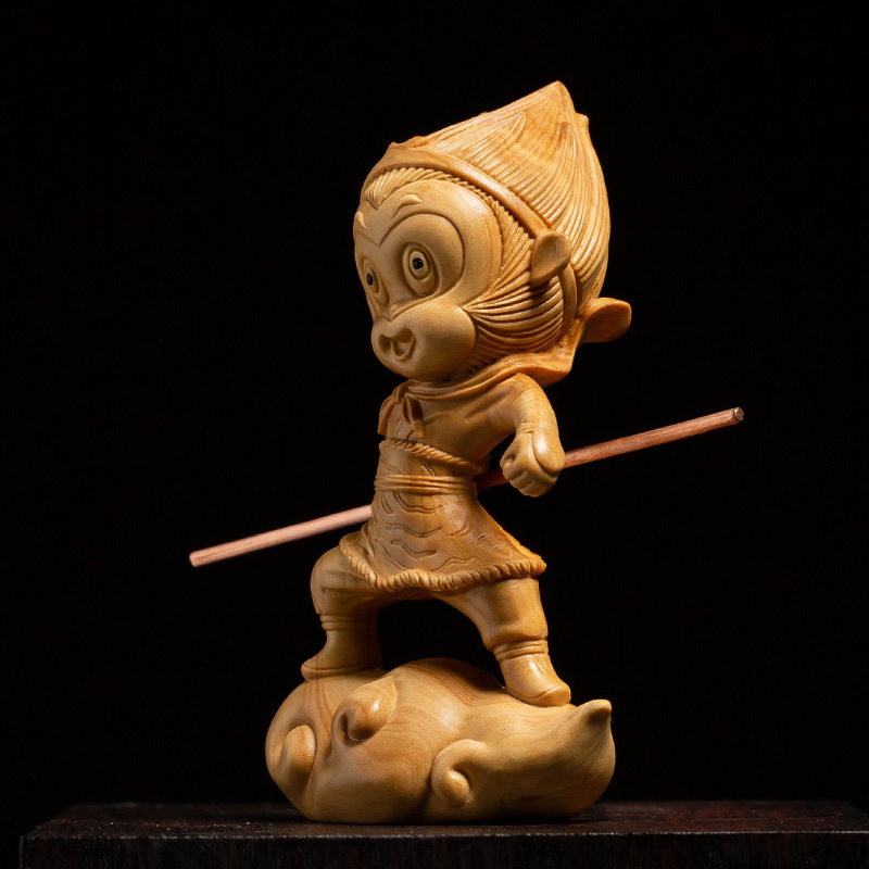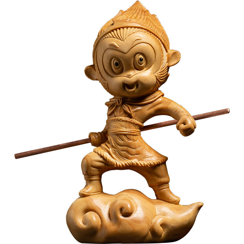 Boxwood creative solid wood Living room decoration crafts Fight against the Buddha Qi Tian Sheng Wood carving Car ornaments Sun Wukong