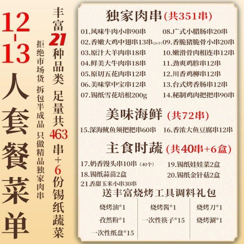 Beibei Lang household barbecue ingredients fresh frozen semi-finished products 12-13 people set lamb skewers outdoor skewers