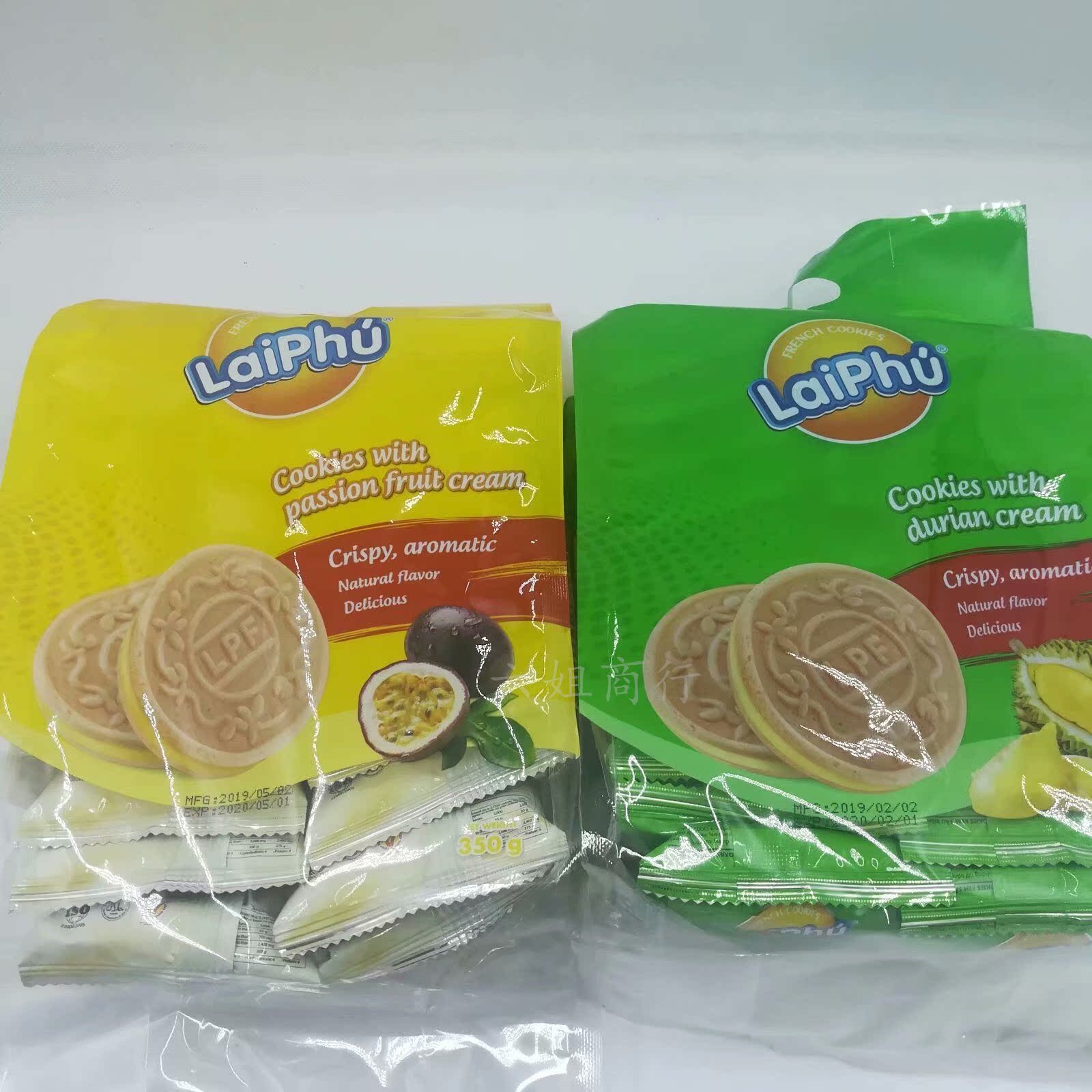 Vietnam Laifu Durian flavor Passion Fruit flavor 350gX2 bags of French crispy sandwich cookies