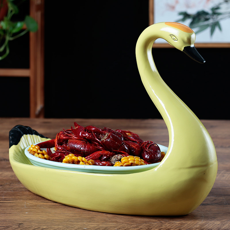 Hot pot restaurant tableware duck goose intestine creative white swan tableware hotel restaurant seafood lobster roast duck special shaped plate