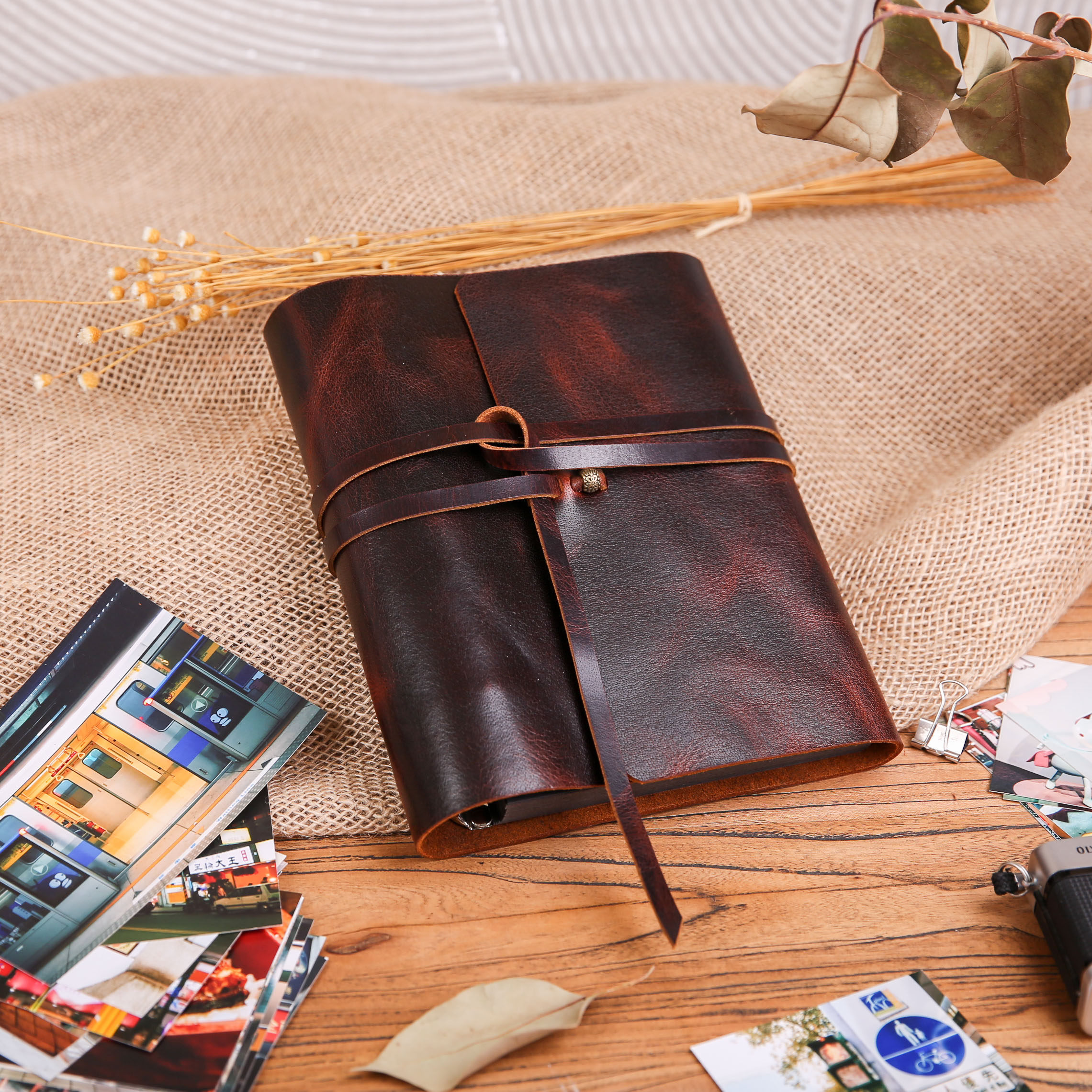 Custom A5 cowhide European retro loose-leaf DIY album hand book Lovers travel souvenir book Genuine leather