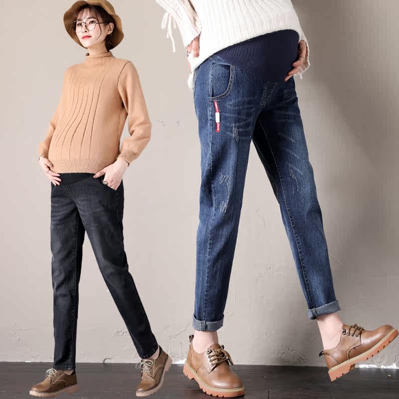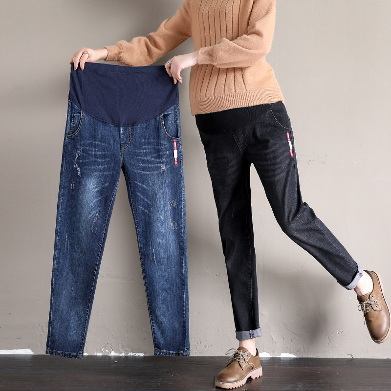 Spring pregnant women dressed in fashion pregnant pants loose and large-size straight tube pants black jeans pregnant women's pants
