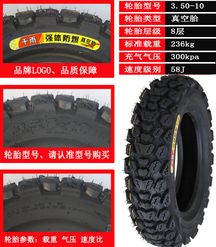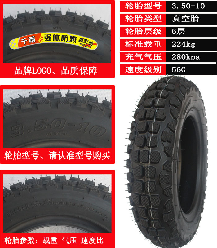 Qianyu motorcycle 3 50-10 vacuum tire electric car scooter 3 00-10 snow off-road non-slip tire