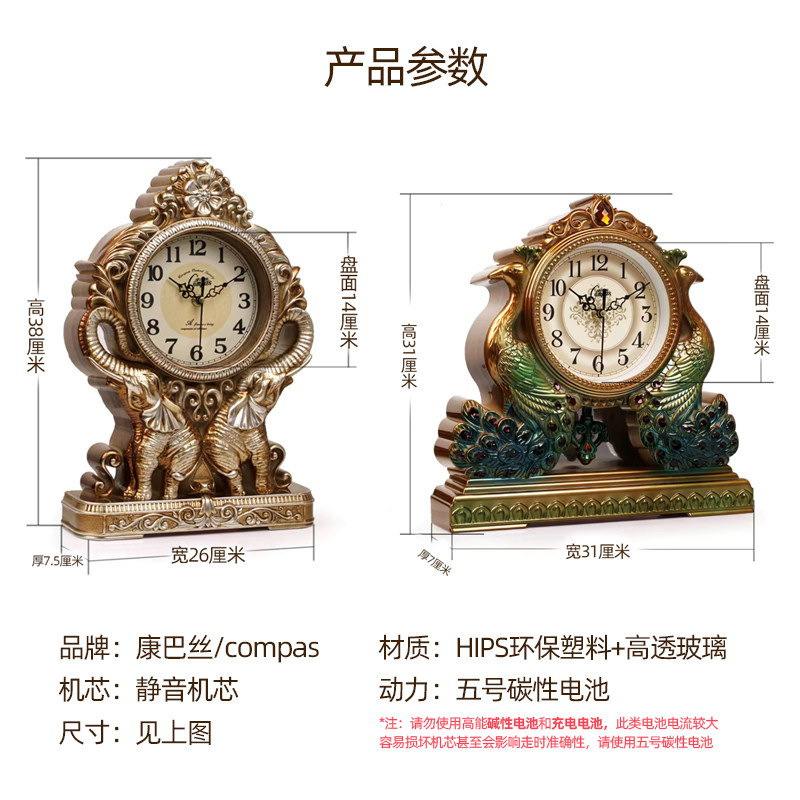 Combas Sitting Clock Living Room Home Mute Vintage Table Clock Bedroom Office Creative European Pastoral Table Clock