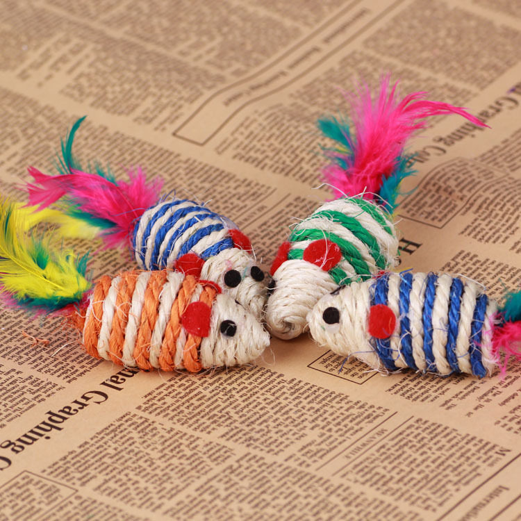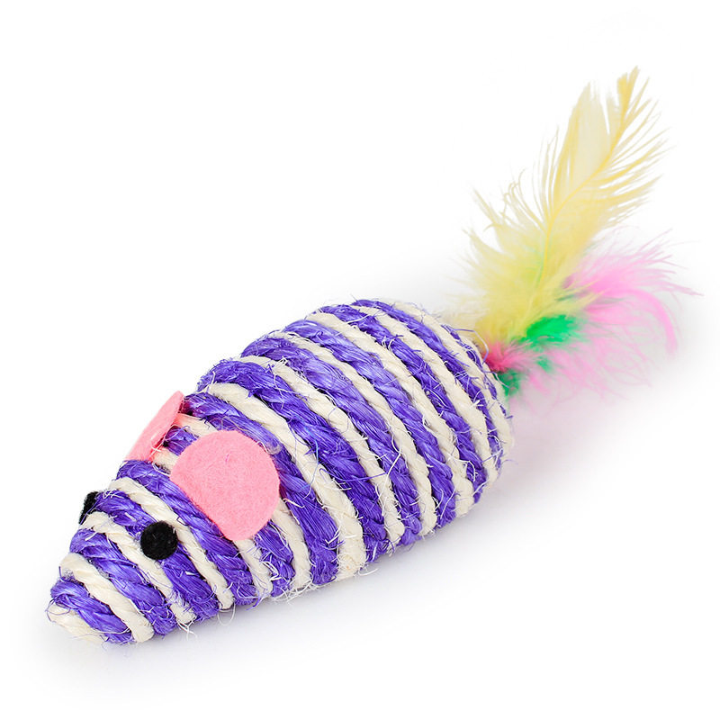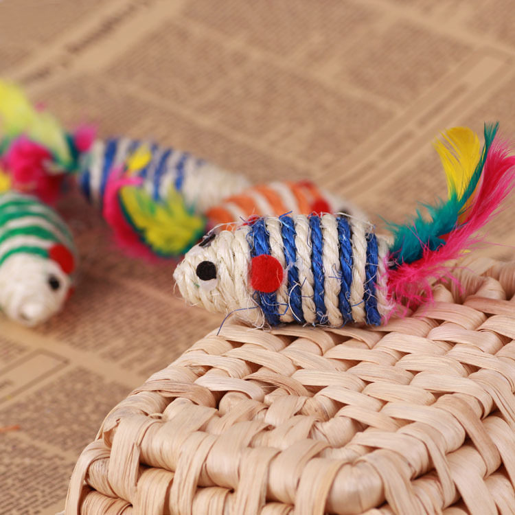 Pet funny cat toy colored feather sisal rope little mouse grinding teeth grinding claws orange cat toy simulation fake mouse