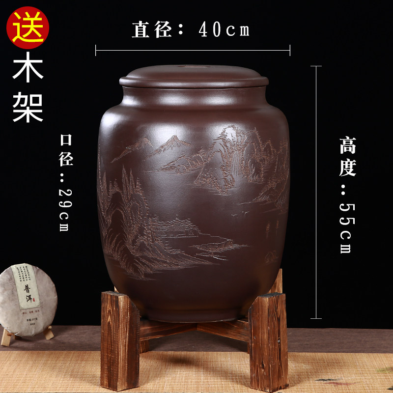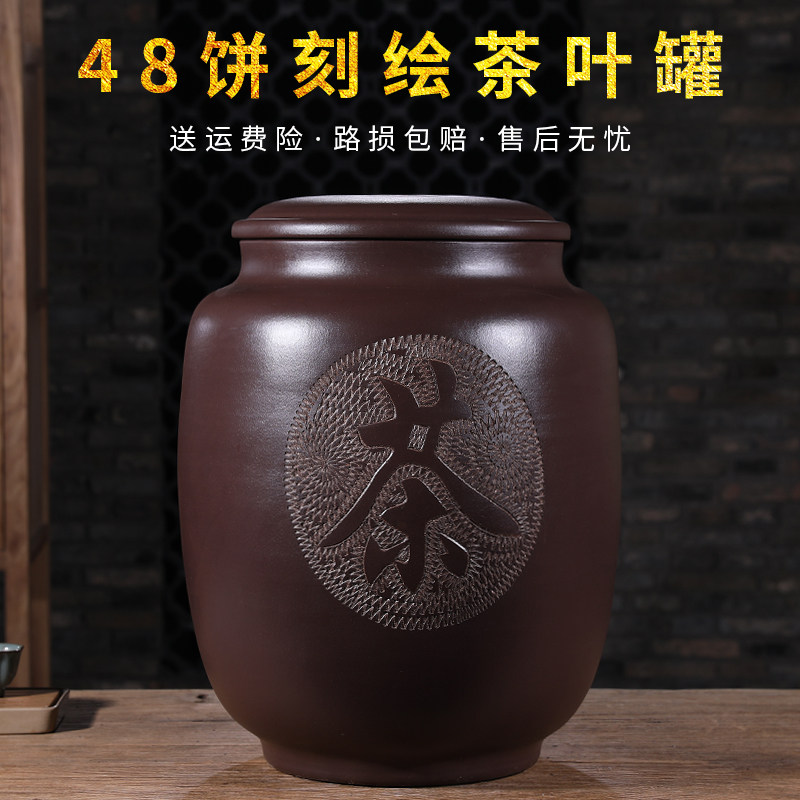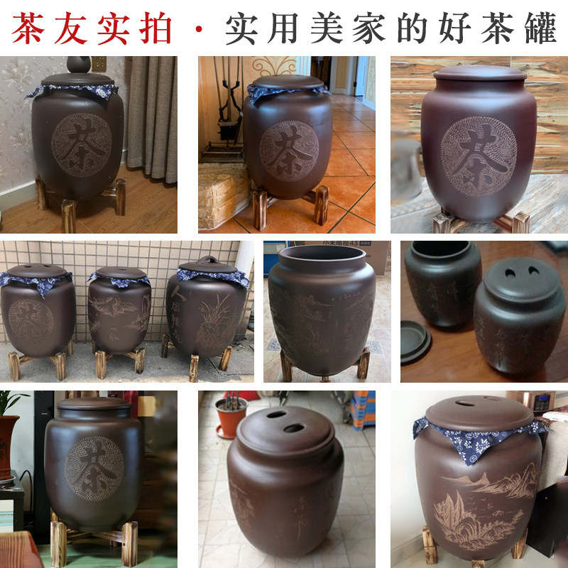 Large Pu'er tea jar Storage tea storage tea wake up tea jar 50 cakes Household large size sealed tea bucket Purple Sand tea jar