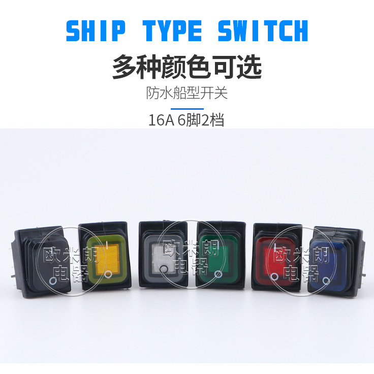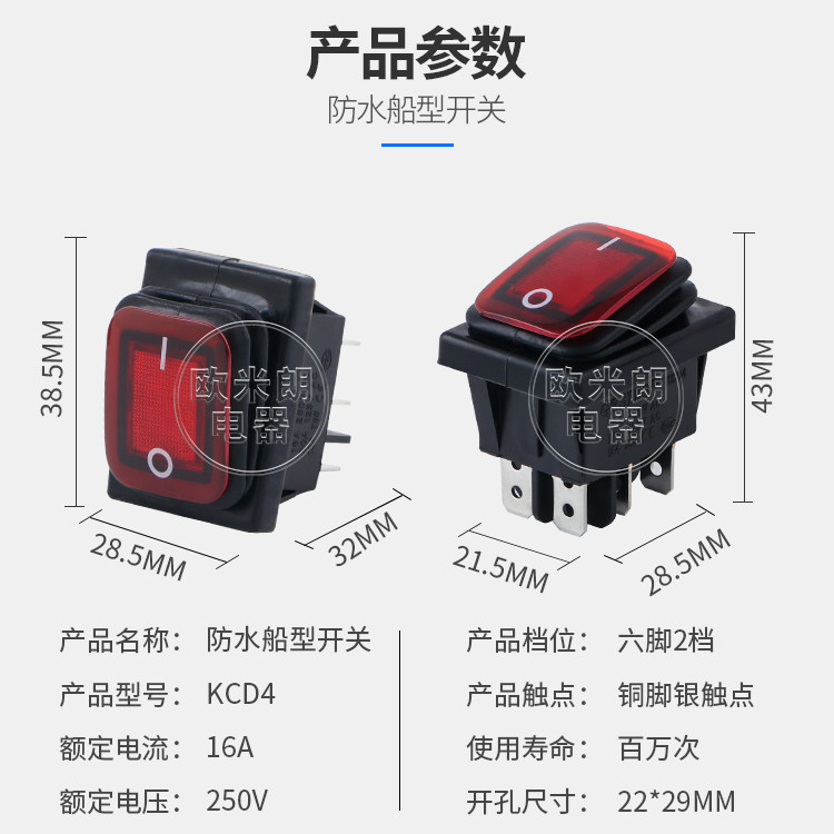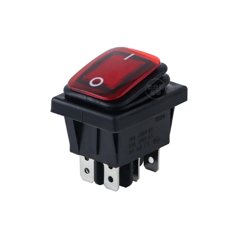 Waterproof rocker switch KCD4 16A six-pin two-speed with light silver dot structure rocker switch factory direct sales