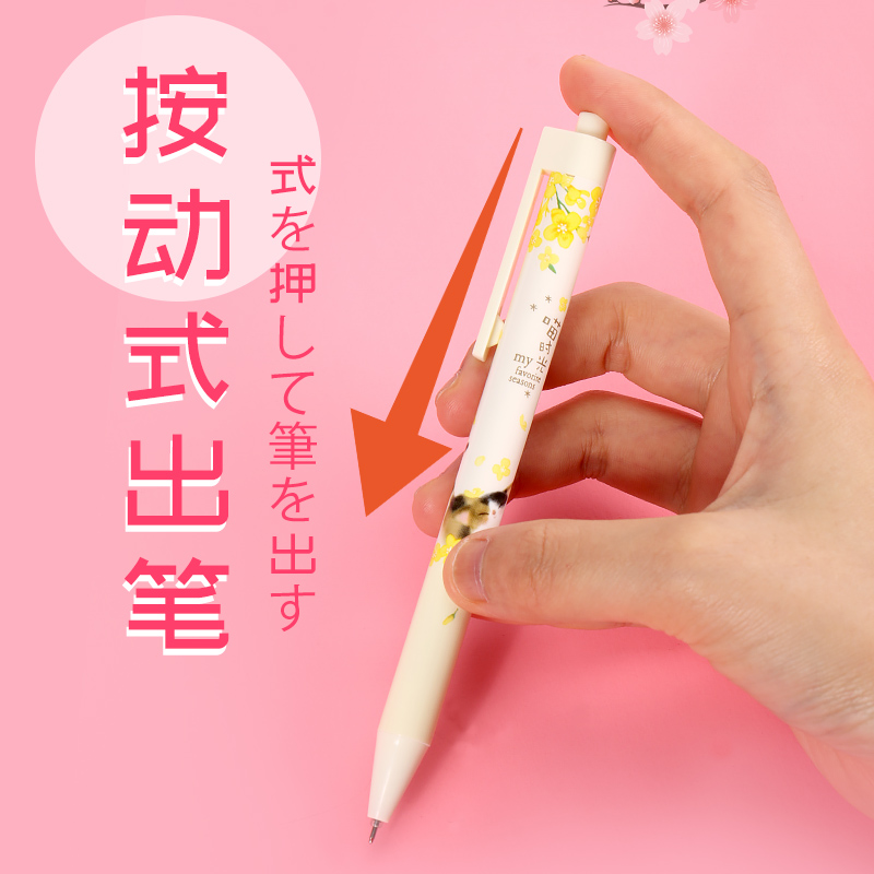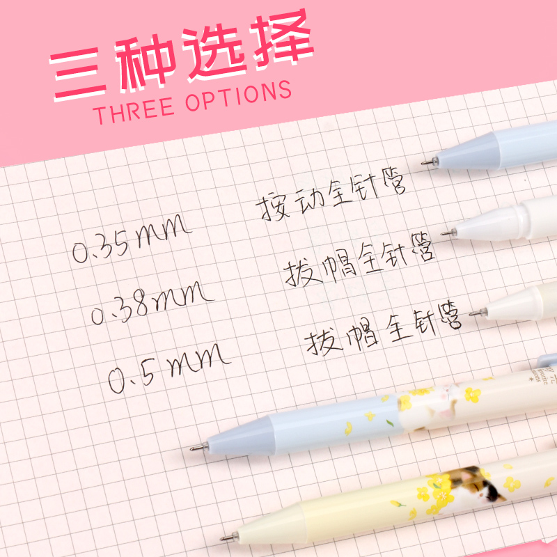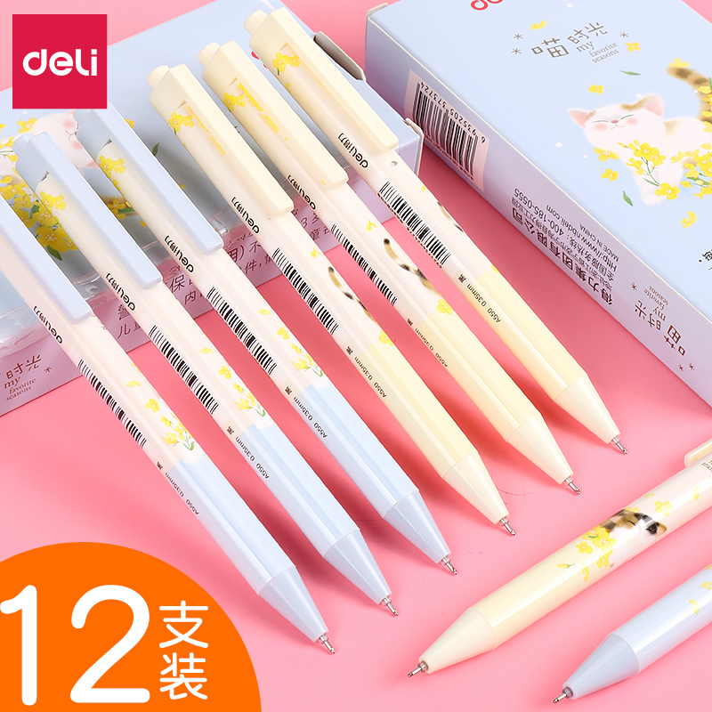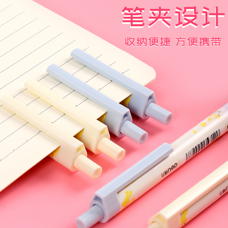 Powerful press gel pen student stationery black cap-type small fresh cute cartoon signature pen large-capacity water-based gel pen office black pen 12 boxed wholesale