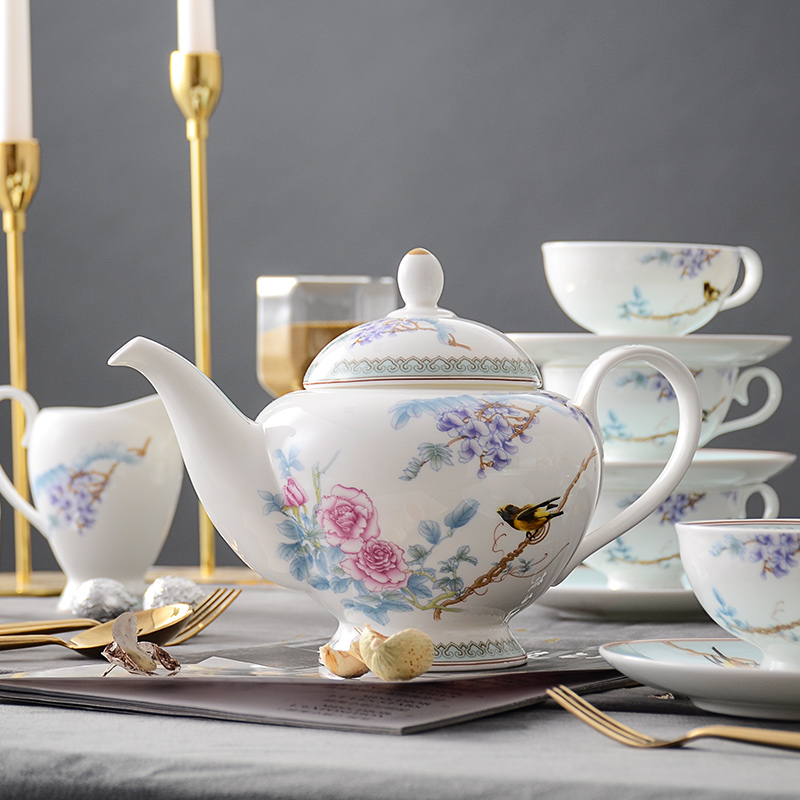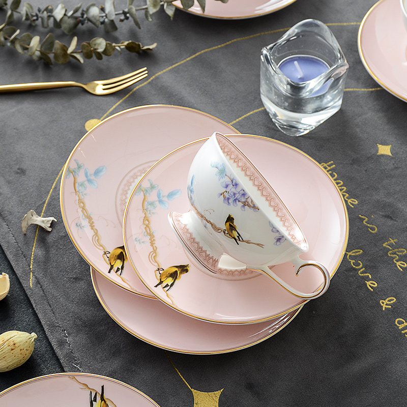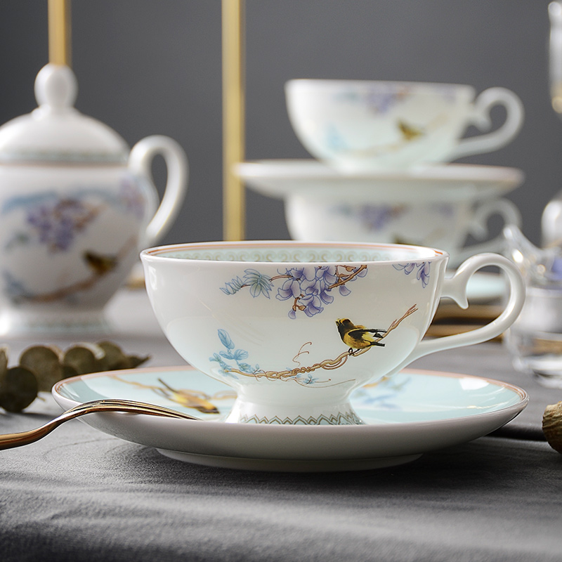 Huaguang Ceramic Upscale European Style Coffee With Bone China Tea Café Coffee Cup Suit Rich peony