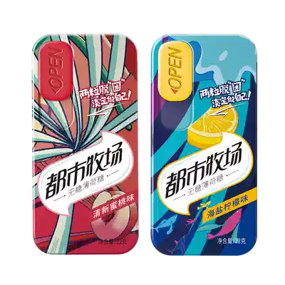 City Ranch Sugar-Free Mint Candy Iron Boxed Sea Salt Lemon Fresh Peach 22g * 4 Box Candy Snacks