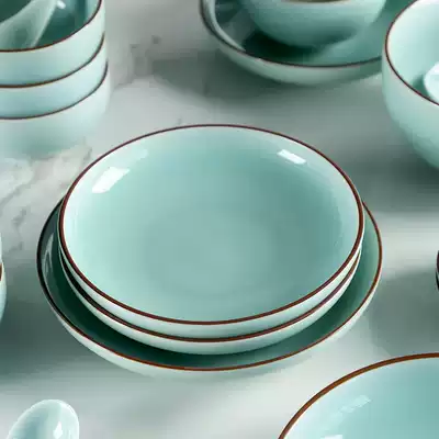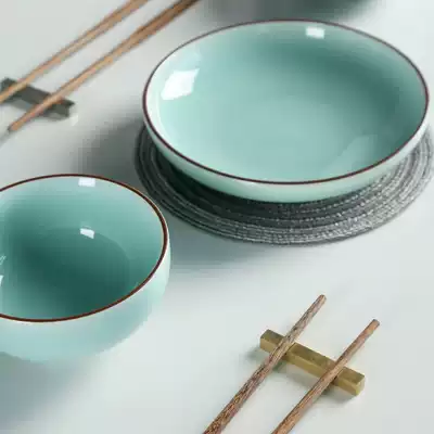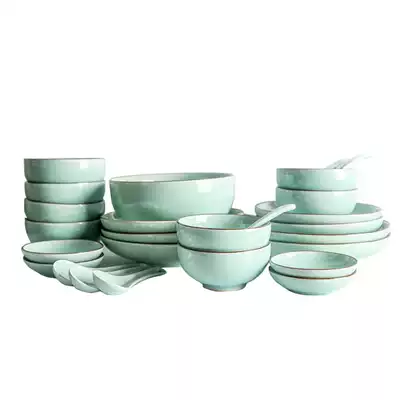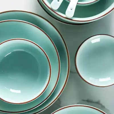 Celadon tableware combination set simple household Chinese ceramic rice bowl plate vinegar dish Nordic dinner plate soup bowl