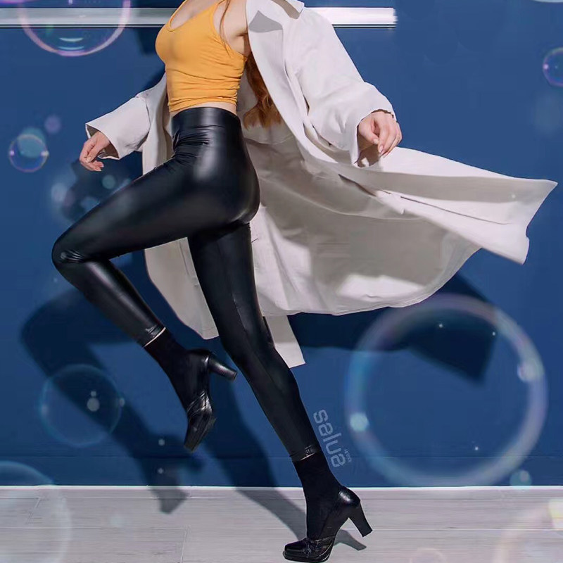 South Korea salua leather pants women's 2019 new outside wear matte high waist autumn and winter models matt thin legs inside tights tight