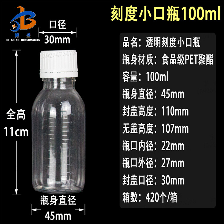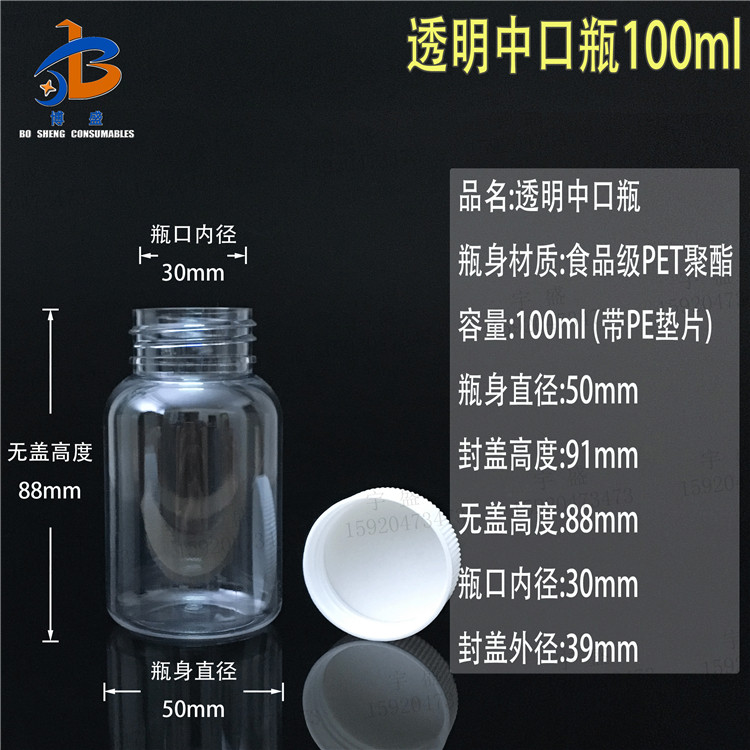 Transparent large round bottle of small mouth bottle PET bottle experimental sample reagent bottle Remain bottle split packaging bottle capsule bottle