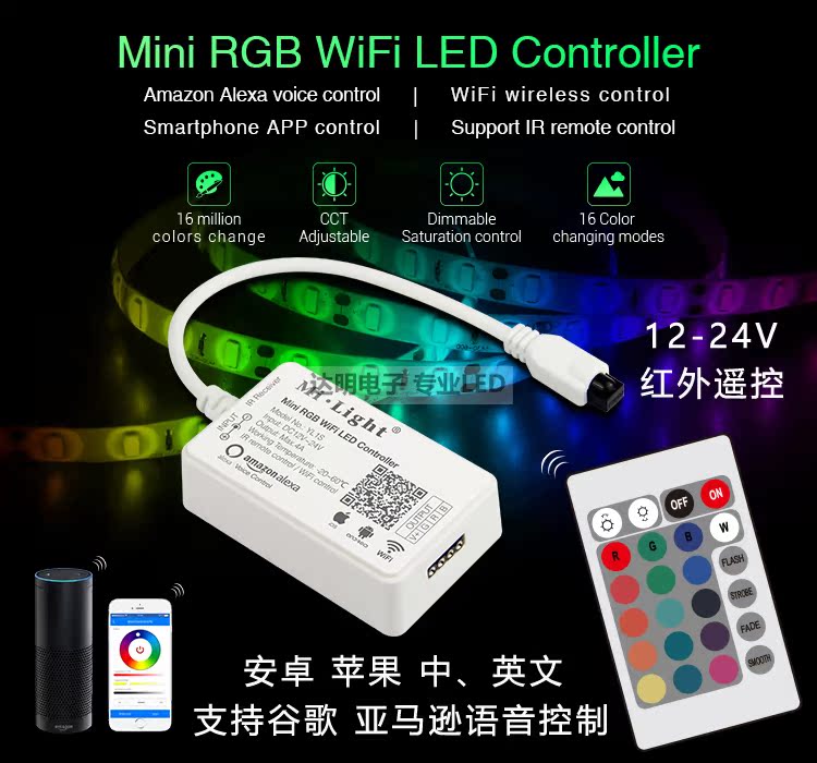 LED24 key controller RGB light with colorful lights infrared remote control 12v24V mobile APP smart home control