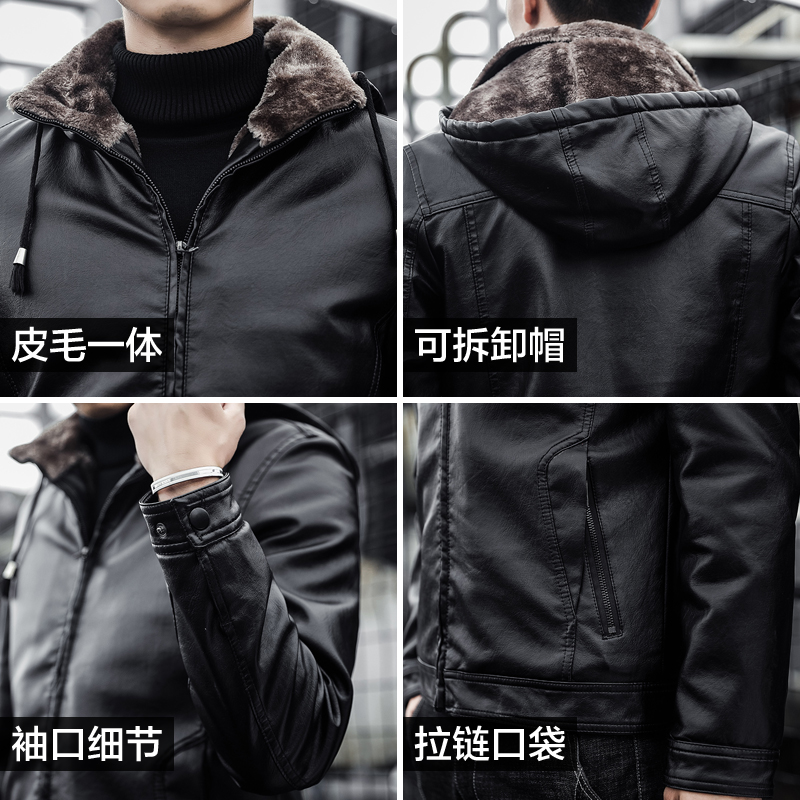 Fur one man's hair coat plus thick winter coat new leather coat trend handsome hat jacket