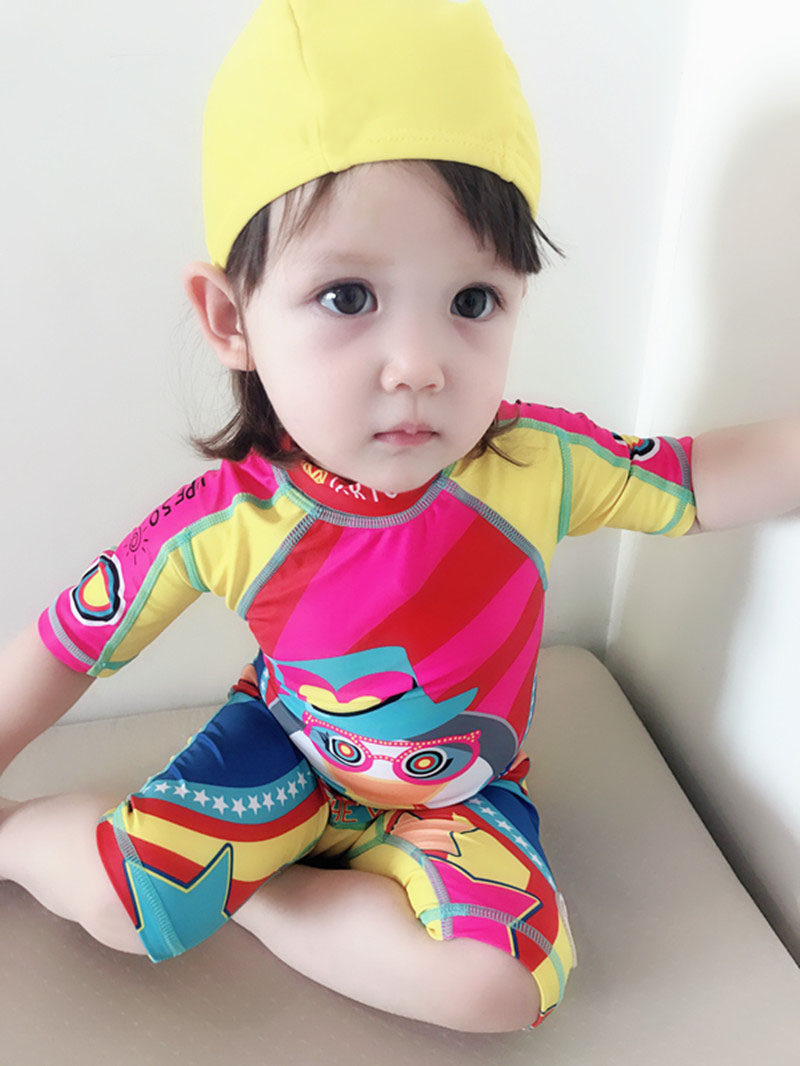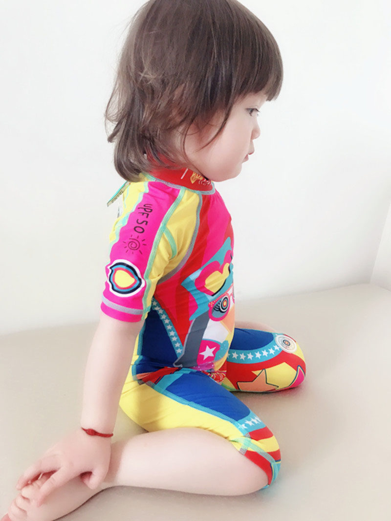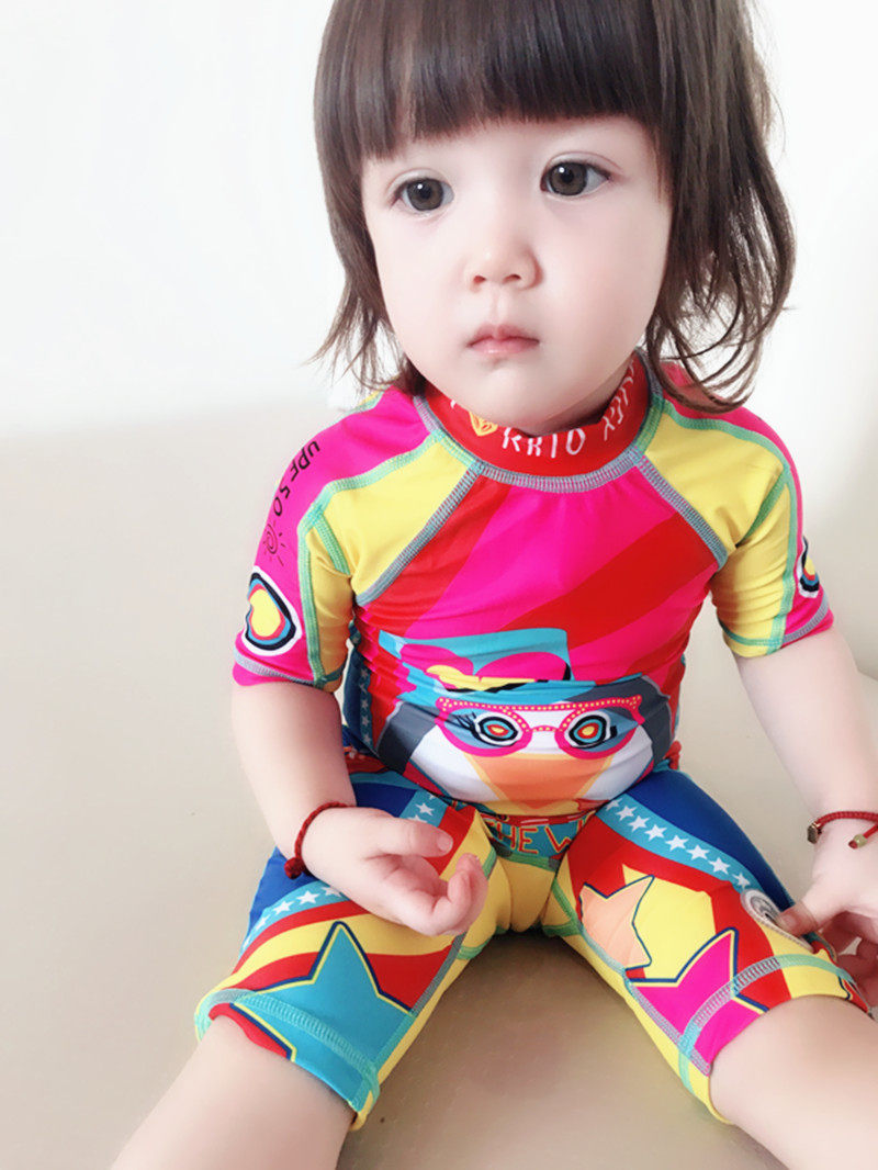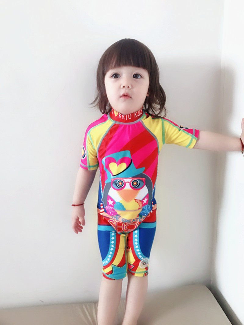 New Korean children's beach swimsuit girls sun protection short sleeves children in cartoon suit surfing tide