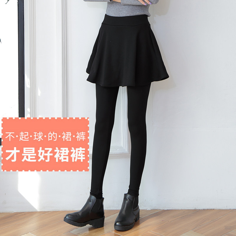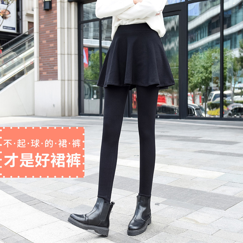 Fake two leggings women's autumn and winter black cotton outside wear winter plus velvet skirt pants with skirt