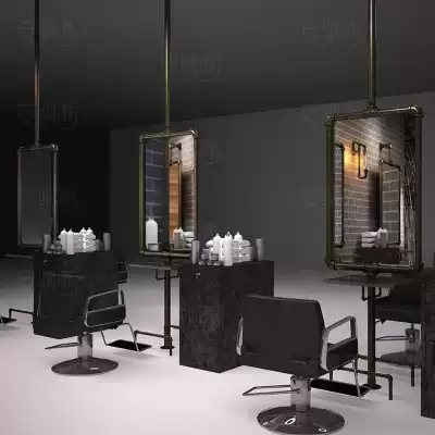 Retro industrial style hairdressing shop mirror table water pipe iron hair salon floor wall-mounted double single-sided mirror