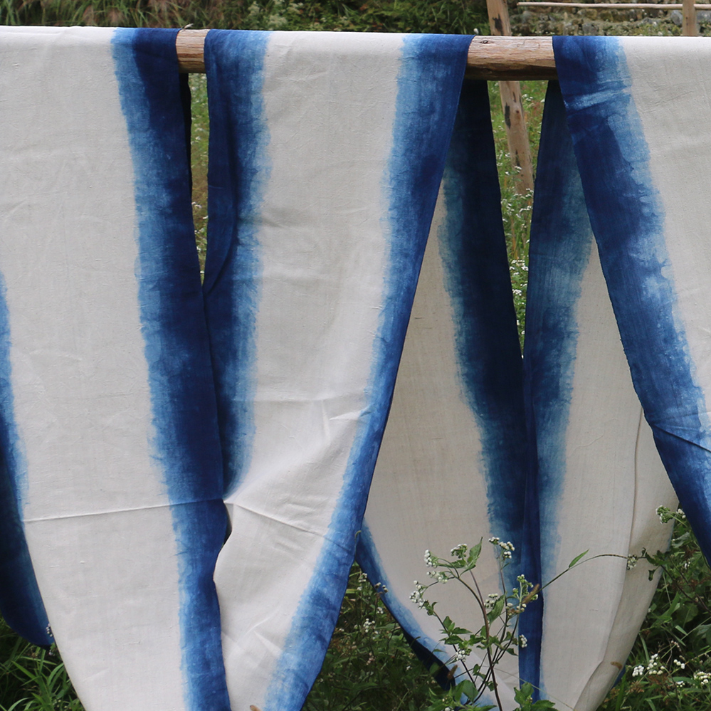 Guizhou Handloom Tubu Gufa Plant Dyeing Grass Wood Dyeing Gradual Layer Traditional Fermentation Blue Dyeing Curtain Door Curtain Pure Cotton Cloth