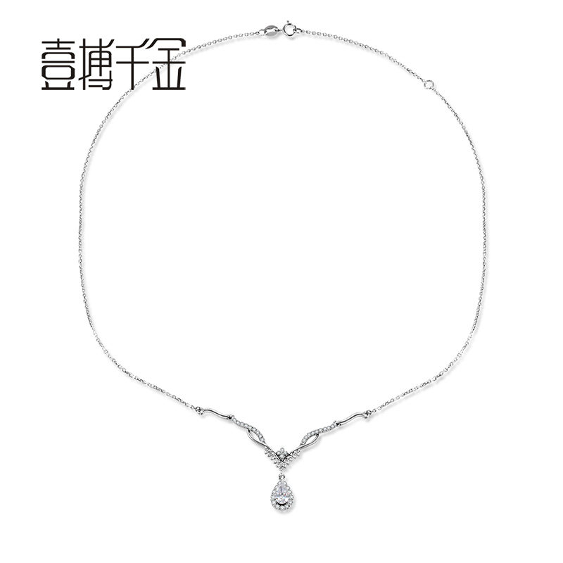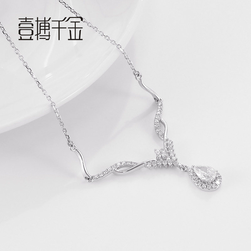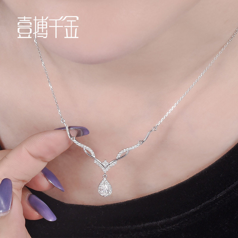 One for one thousand gold white 18K gold antler drop-shaped luxury noble temperament feminine diamond pendant necklace necklace