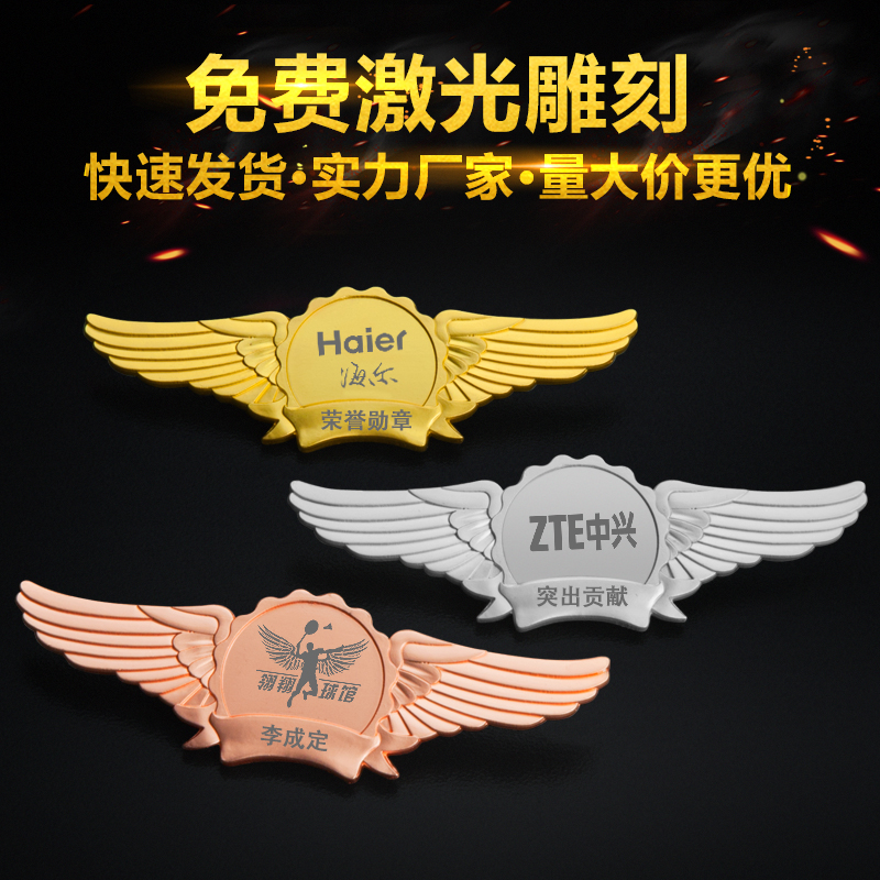 Personality Badge Custom Wings Metal Badges Set For Chest Badge Excellent Staff Chest Signs Division Badge Badge